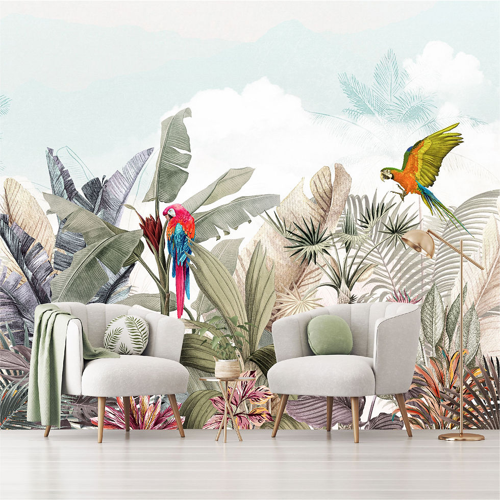 Mural Plantas Tropicales con Loros - MT411